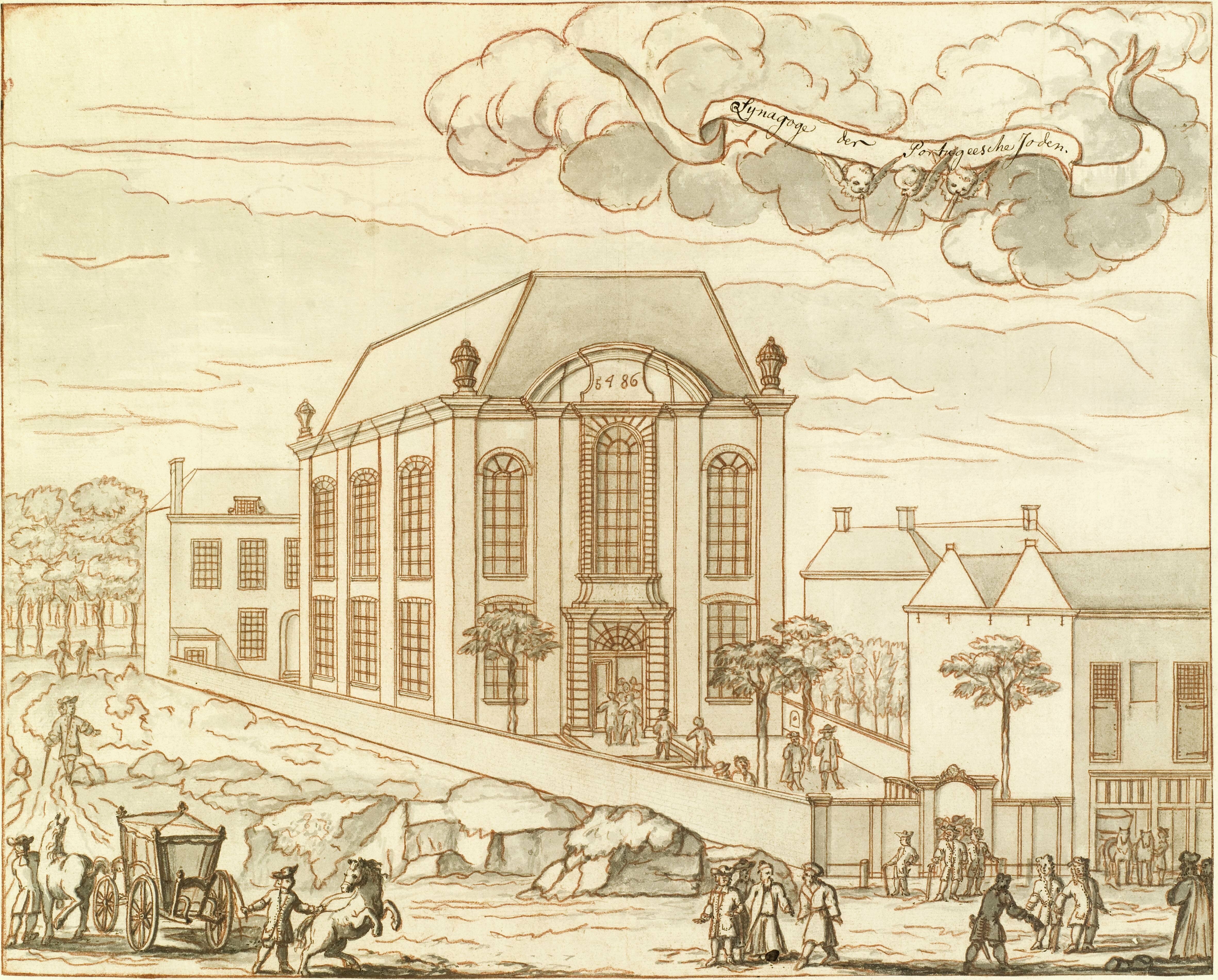 - Tekening van de synagoge Prinsessegracht, 1729. Maker Gerrit van Giessen
